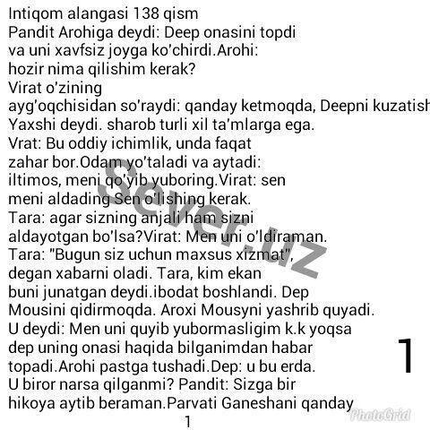 Intiqom alangasi 138 qism voqealar rivoji
